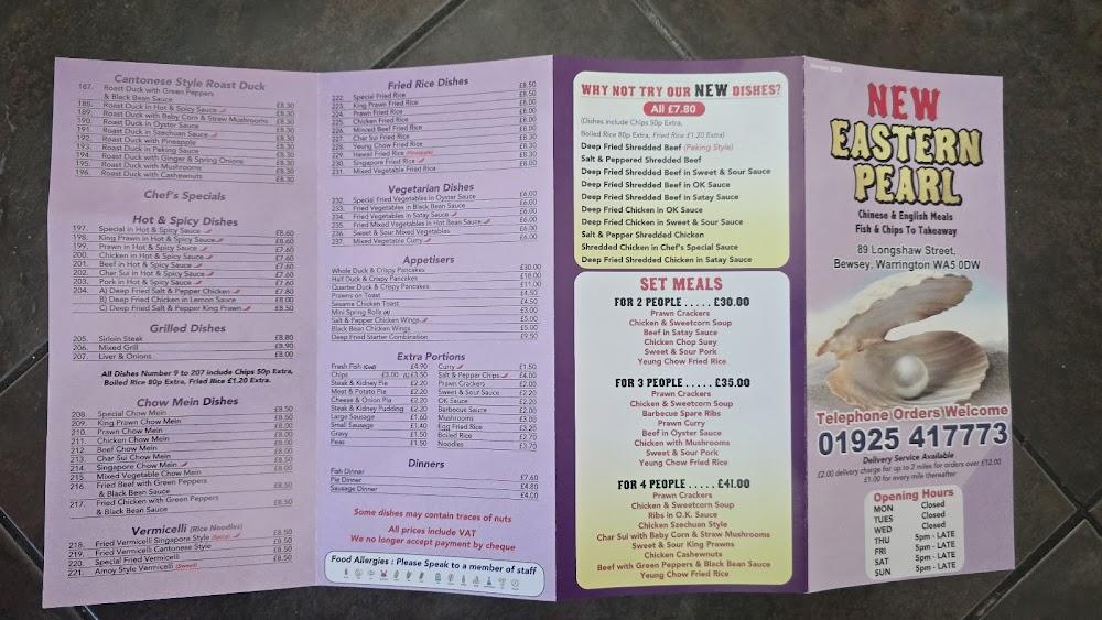 Eastern Pearl sits at 89 Longshaw St in Warrington, making it easily accessible to locals and those passing through the area. This fast-food gem specializes in Chinese takeaway, with a cozy space that invites you to enjoy a meal either inside or at home. The family-run nature of the establishment adds to the welcoming vibe, and the team is known for treating regulars like family. The restaurant prides itself on offering a mix of traditional and contemporary Chinese dishes, ensuring something for everyone. Accessible parking on-site and the flexibility of accepting reservations make dining here stress-free. With late-night hours, it caters well to those in search of a quick bite after a long day. The casual atmosphere and attentive service keep the energy high, making it a favorite spot in the community.